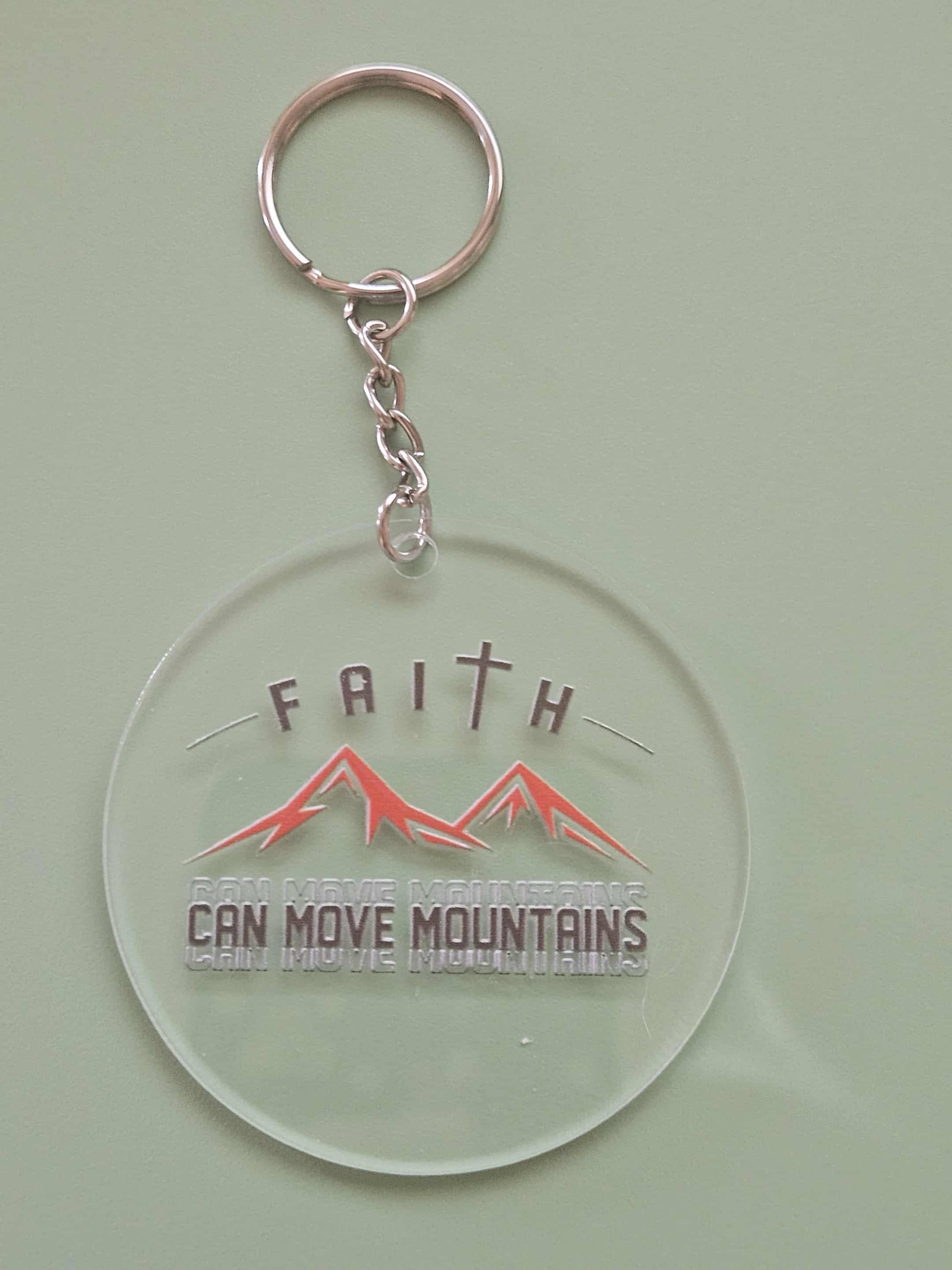 Clear Acrylic 3" Round Keychain With UV DTF Sticker Faith Can Move Mountains