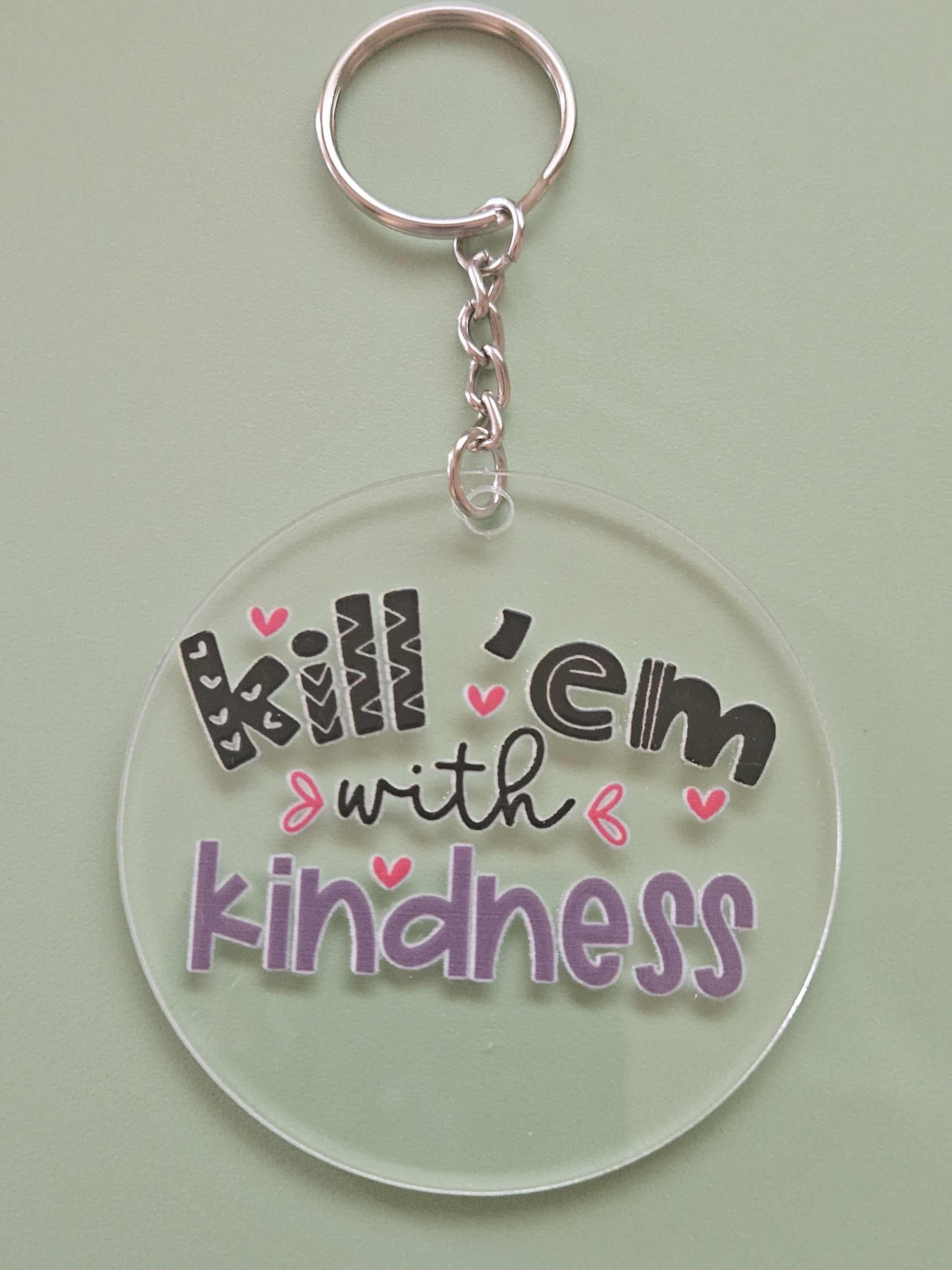Clear Acrylic 3" Round Keychain With UV DTF Sticker Kill Em With Kindness
