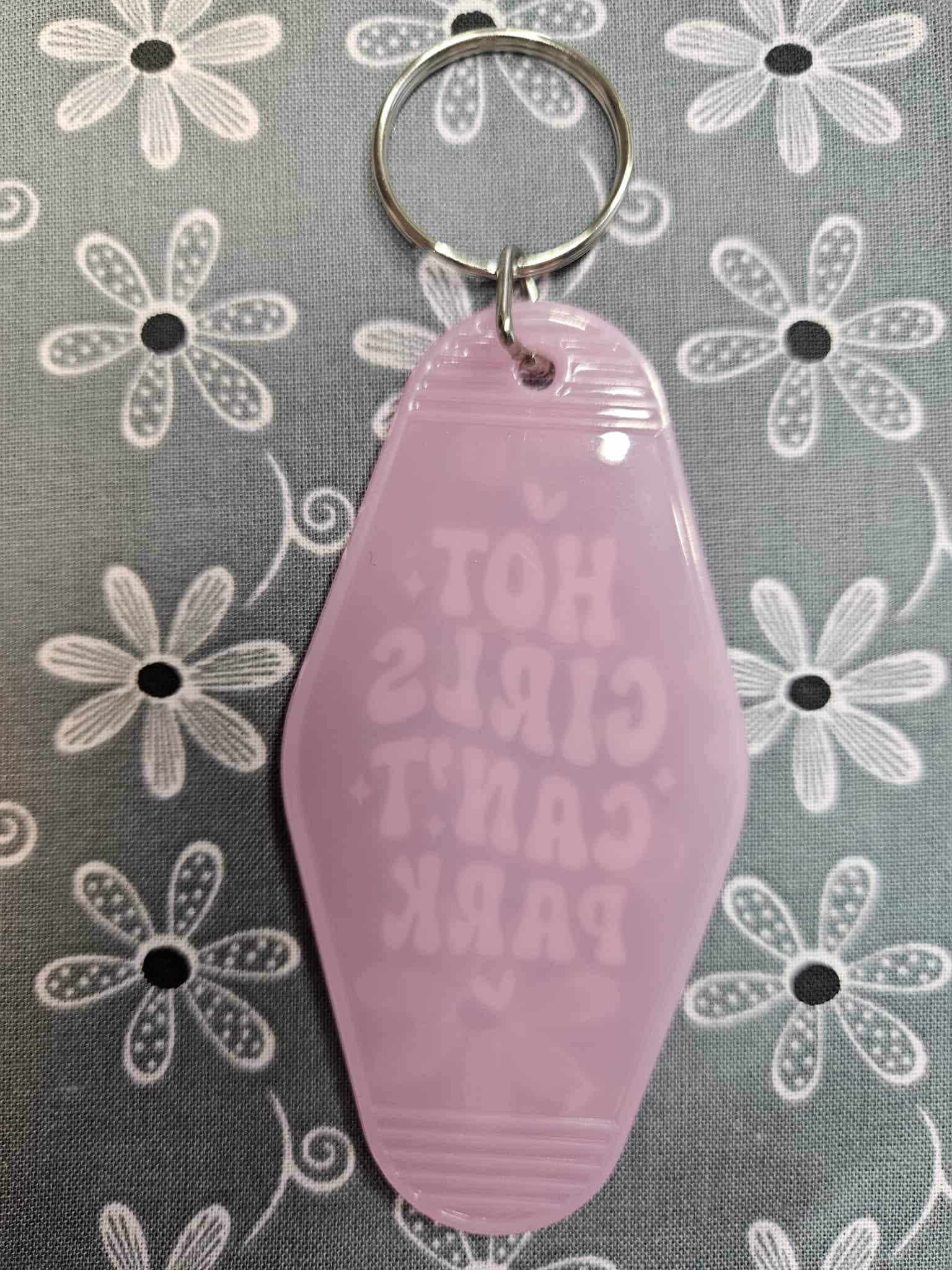Text: Hot Girls Cant Park Size: 3.5" x 1.75" Not Including Jump Ring