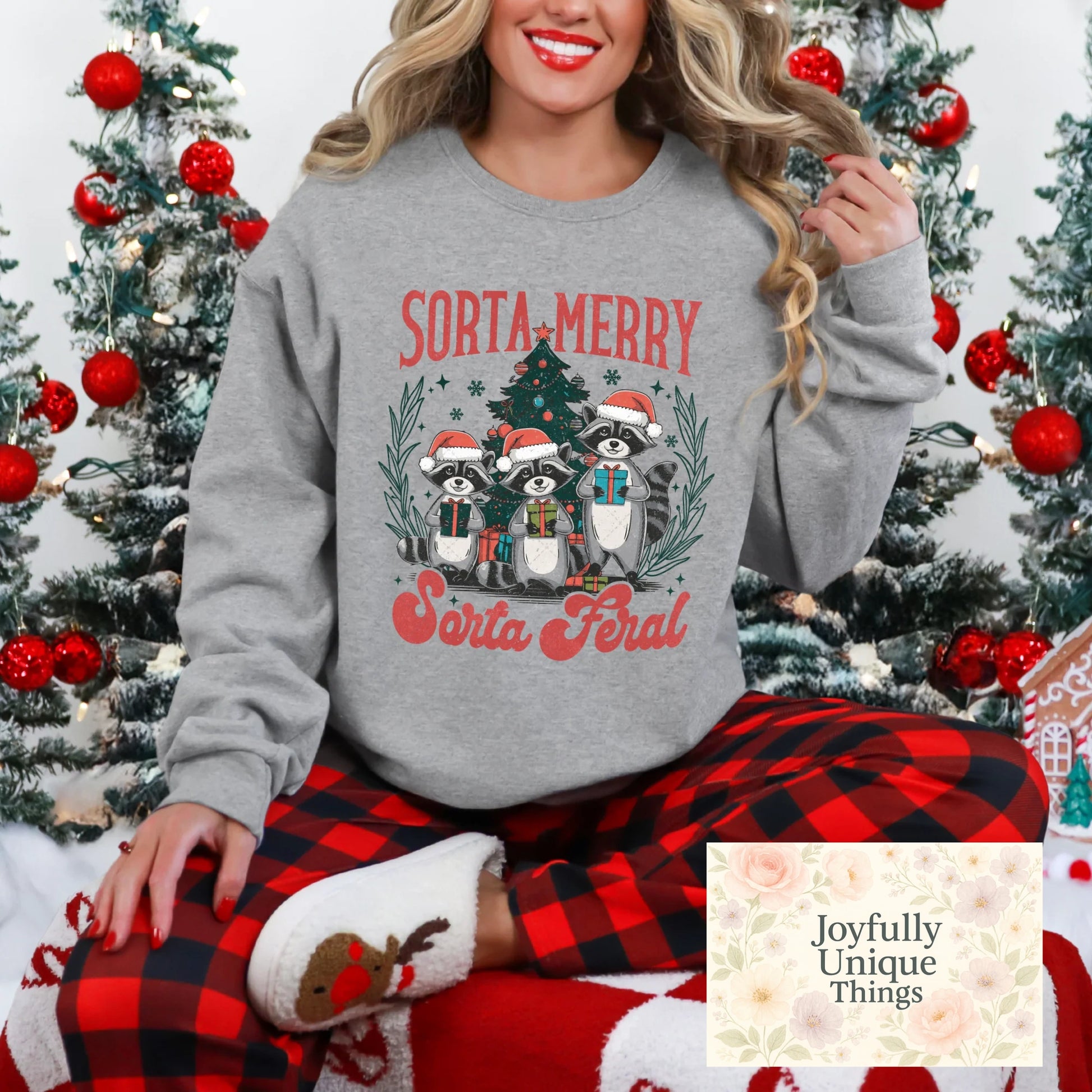 Short Sleeve T-Shirt Christmas Tree Santa Hat Raccoon Trash Panda Sorta Merry Sorta Feral