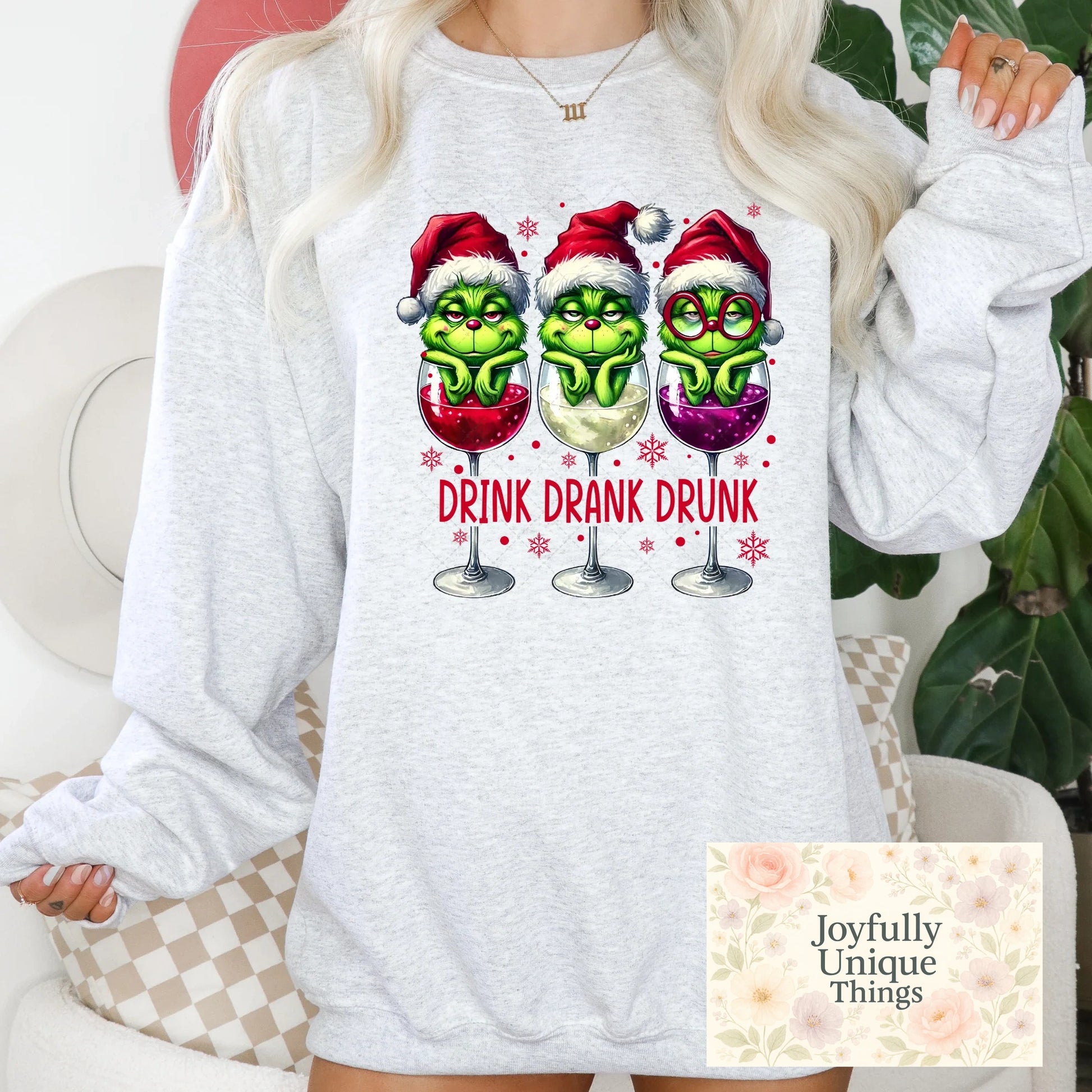 Short Sleeve T-Shirt Christmas Wine Grinch Gman Drink Drank Drunk