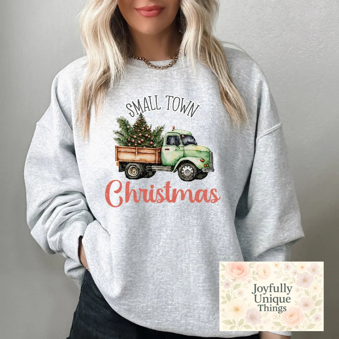 Short Sleeve T-Shirt Small Town Christmas Vintage Old Green Truck